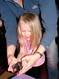 Naomi is pretty timid of the chicks but was able to hold one with a little help.
